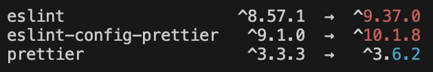 즉, eslint의 최신 버전이 9.x.x여도 ^8.57.1로 지정되어 있으면 계속 8버전대에 머문다.